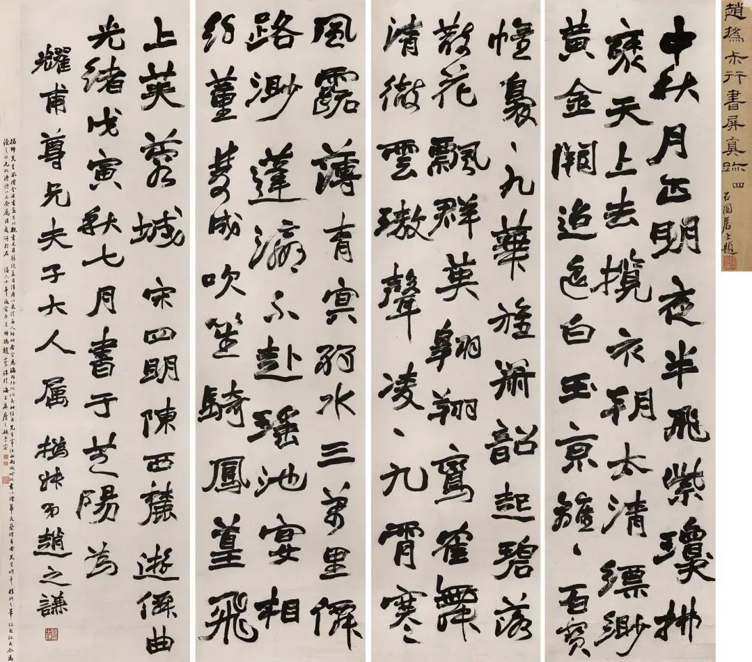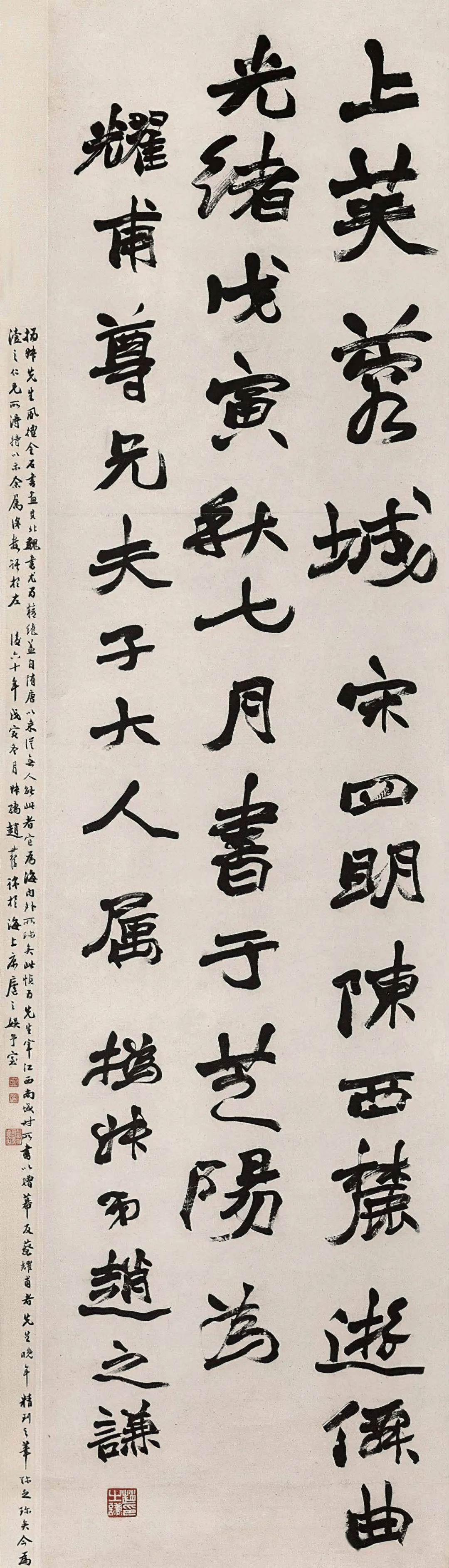 款识:光绪戊寅秋七月书于芝阳,为耀甫尊兄夫子大人属,撝叔弟赵之谦。
