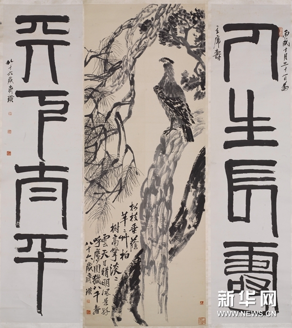 齐白石《松柏高立图·篆书四言联》