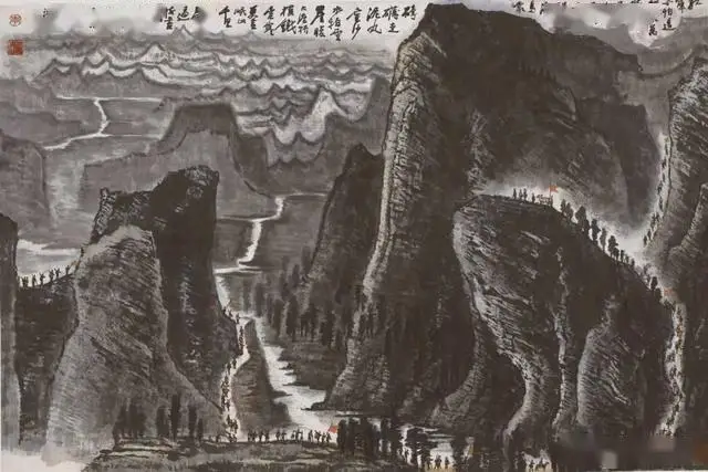 第三,用色的象征性突破。 李可染在用色上大胆创新,尤以《万山红遍》系列为代表。他运用朱砂、朱磦等鲜艳色彩,大面积渲染山体,营造出“层林尽染”的壮丽景象。这种用色并非写实性的色彩再现,而是高度象征化的情感表达,寄托了画家对新中国建设热情的礼赞。他将传统“随类赋彩”的原则升华为“随情赋彩”,使色彩成为心象的直接载体。