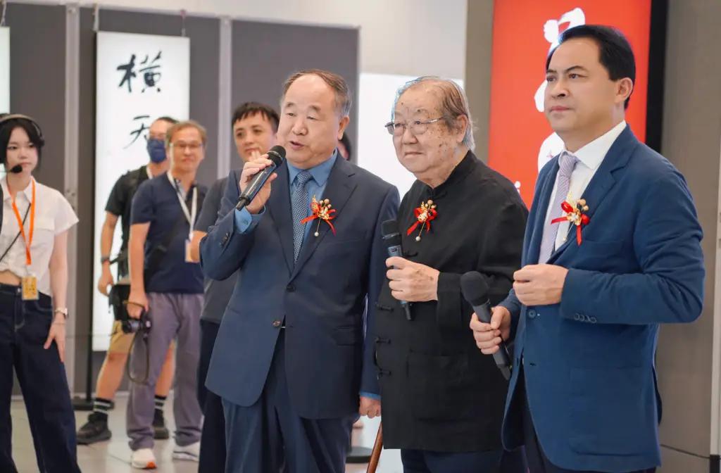 10月18日,诺贝尔文学奖得主莫言与书法家王振联袂举办的“放宽心·吃茶去”书法摄影展,在香港中央图书馆展览馆开幕,这场艺术盛宴将观众带入了一个文学与书法交融的沉浸式世界。