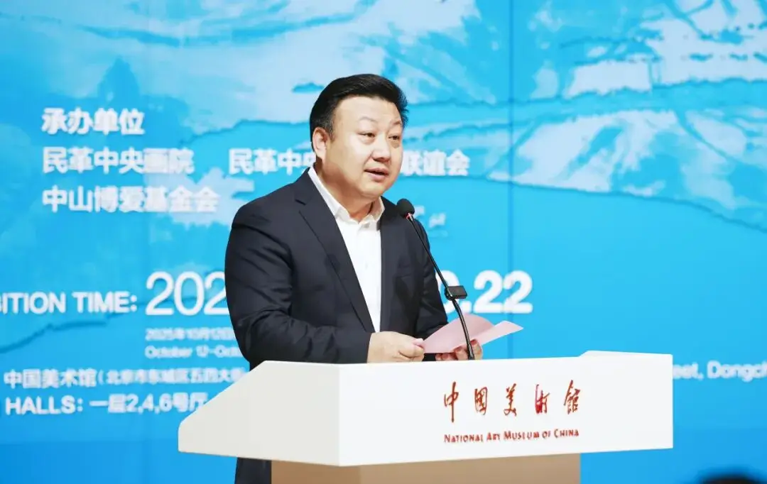 何报翔在讲话中指出,长江的保护和发展,是习近平总书记念兹在兹的牵挂。自2021年开始,受中共中央委托,各民主党派中央、无党派人士围绕长江生态环境保护,开展为期5年的民主监督工作。今年是“绿水青山就是金山银山”理念提出20周年,也是长江生态环境保护民主监督工作的收官之年。我们举办以“共绘一江清水”为主题的书画作品展,邀请民革30个省级组织共同参与创作长卷《新长江万里图》,正是希望讲好长江流域生态环境保护和高质量发展的生动故事,展现民主党派在参与长江生态环境保护民主监督工作实践中的积极作为。他强调,要深刻把握文艺工作的正确方向,自觉把艺术追求融入国家建设事业之中,创作出更多无愧于我们这个伟大时代、伟大国家、伟大民族的优秀作品,为强国建设、民族复兴添砖加瓦、贡献出力。