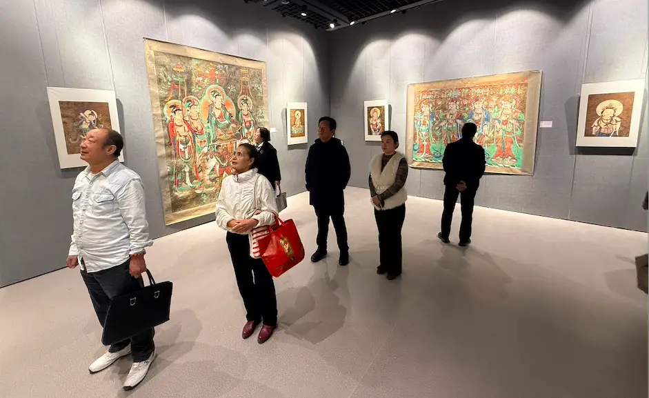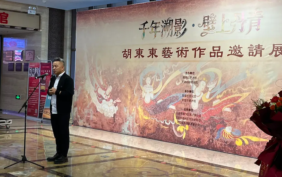2025年10月13日上午10时,由敦煌市文化馆、敦煌市美术馆联合北京高炳山艺术馆、天津杨柳青画院主办的“千年溯影·壁上丹青——胡东东艺术作品邀请展”在敦煌市文化馆一楼公共大厅盛大启幕。本次展览以丝路文化为底蕴,以当代丹青为媒介,展现了一场跨越千年的艺术对话,吸引了众多文化艺术界人士及艺术爱好者齐聚一堂,共襄盛举。
