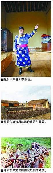 在腾克镇附近的达斡尔民俗村,记者见到了年逾五旬的达斡尔族民间艺人鄂铁柱。他能歌善舞,传承着达斡尔族的文化遗产,被当地人誉为达斡尔族的“活化石”。