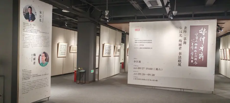 上海朵云轩集团总裁朱旗表示,朵云轩成立至今已有125年,始终致力于传承中华优秀传统文化,推动各种艺术流派的交流互鉴。宋汉光的隶书融汇古今、结构严谨、气象正大;梅丽君的草书根基篆隶,笔走龙蛇,融狂放与奇崛于一炉。本次双人展,正是一场深具内涵的艺术对话。“隶阵”之庄严与“草舞”之灵动,一静一动相得益彰。